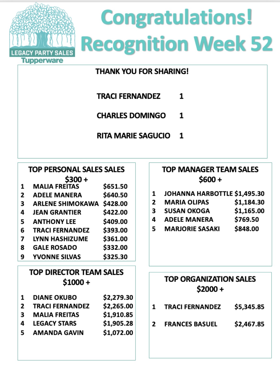 Congratulation to our Week 52 Achievers!