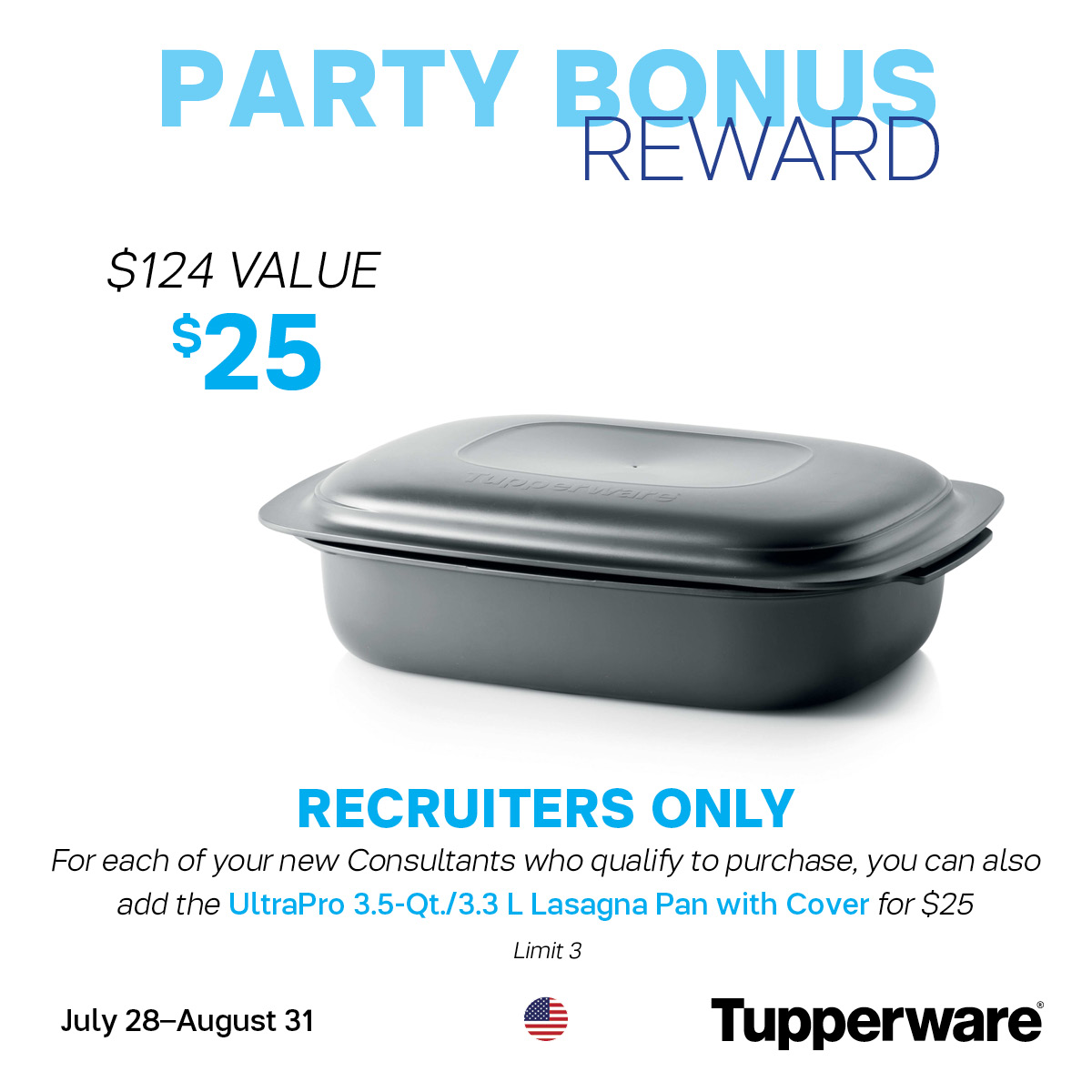 When a new team member submits $500 by Aug 31…they will scoop up the Ultra Pro Lasagna Pan!