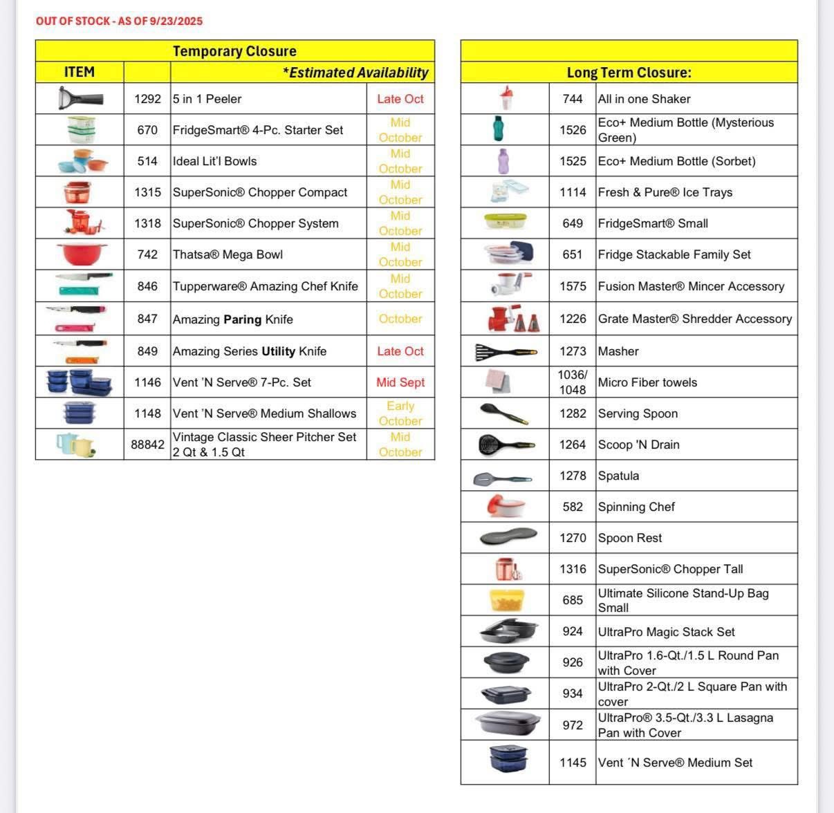 Here’s our current out of stock list